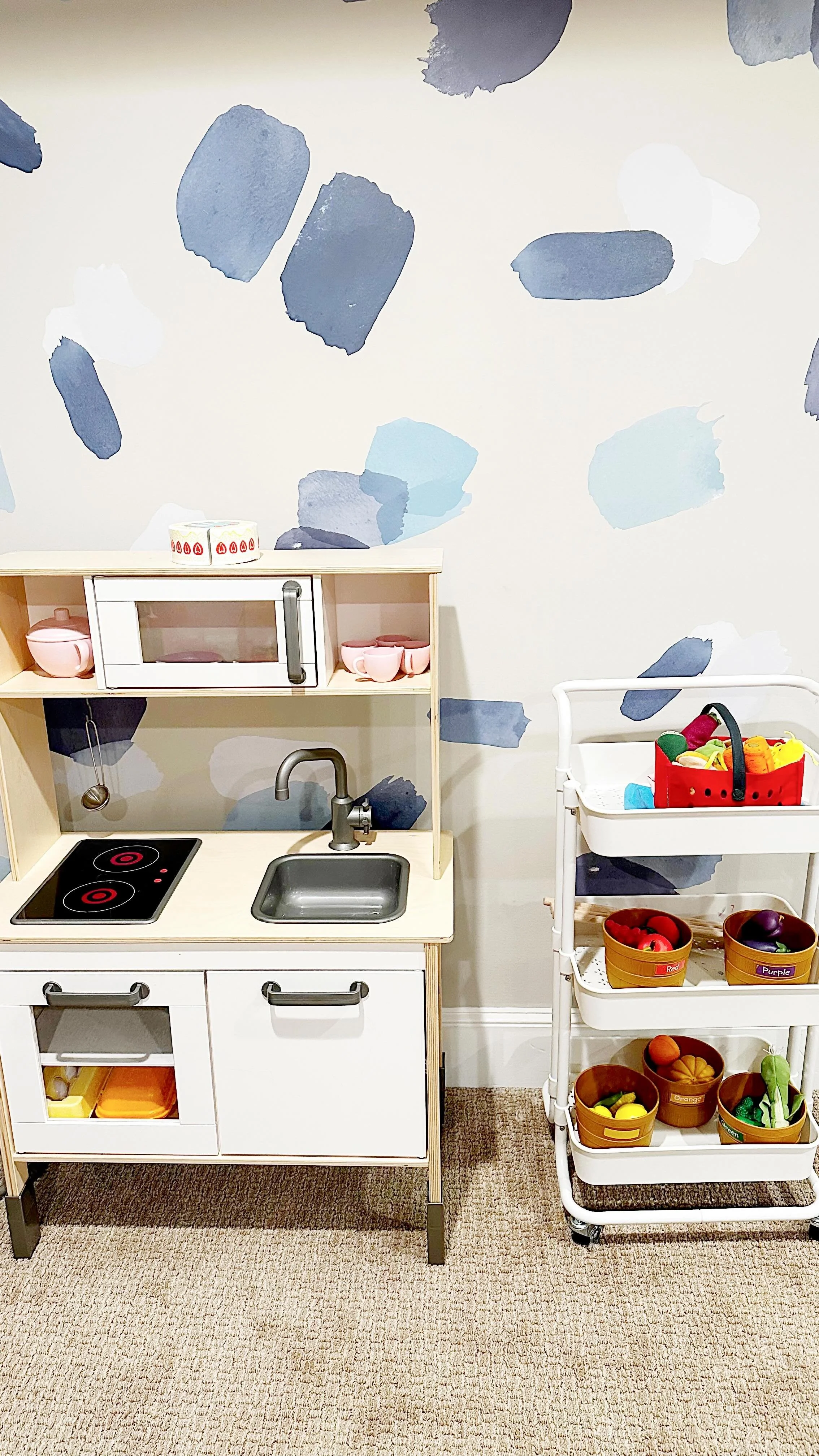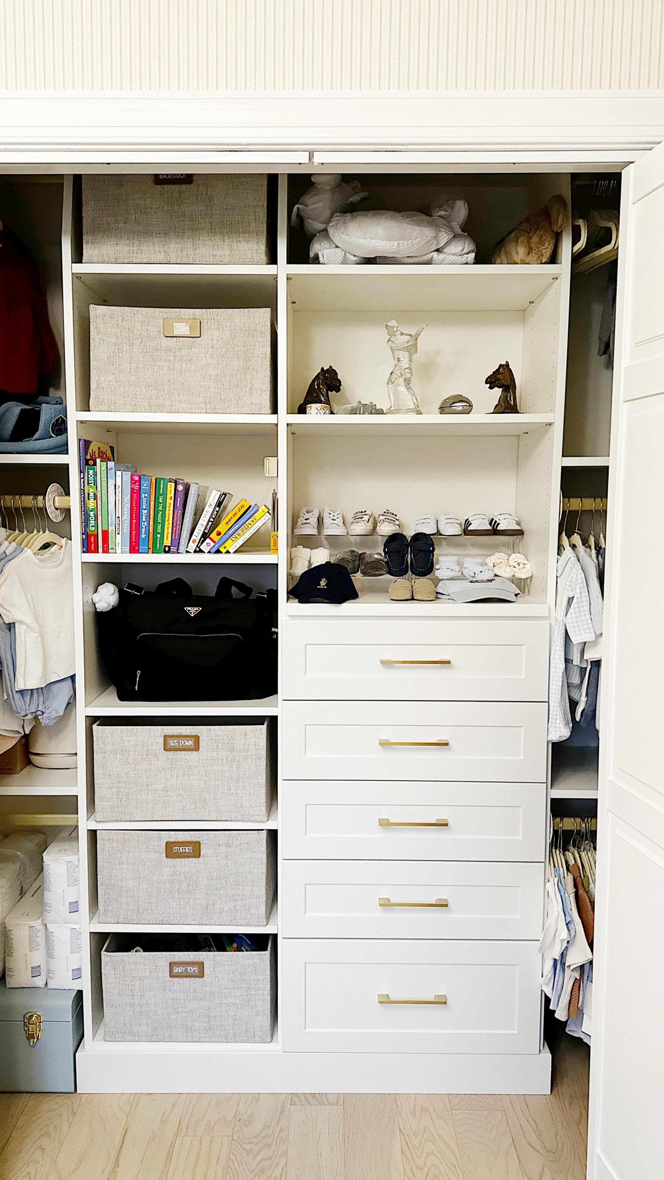 Use labeled bins and baskets to create natural limits for categories